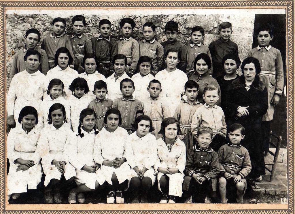 A la fotografia hi ha trenta-cinc persones: disset nens, divuit nenes i tres mestres. Els nens no van vestits iguals que les nenes, les nenes porten la camisa blanca i els…