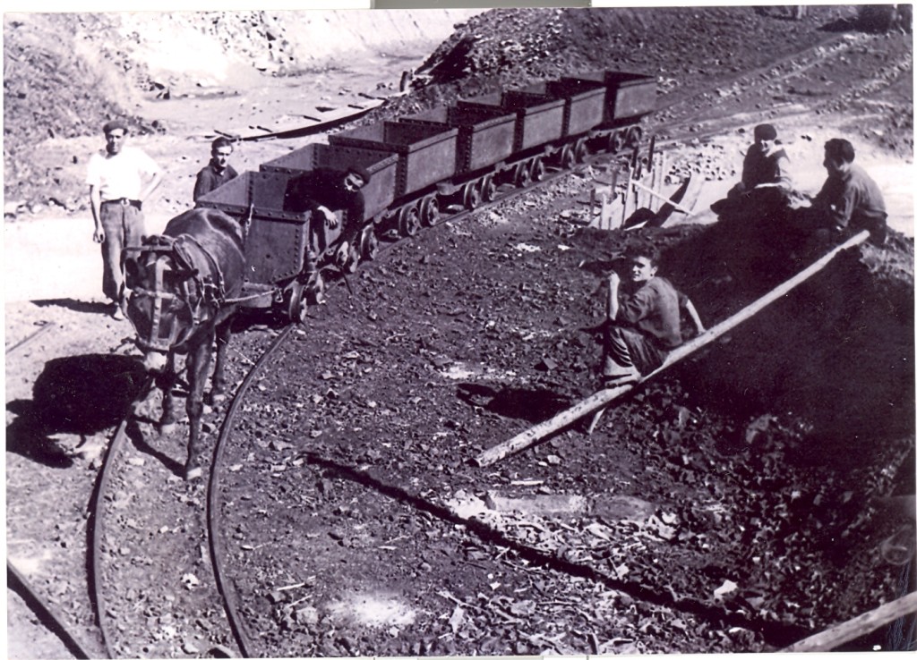 Al principi, els miners treien el carbó amb vagonetes que eren tibades per “machos”. Més endavant, els “machos” ja no tibaven les vagonetes, sinó que hi havia una màquina elèctrica…